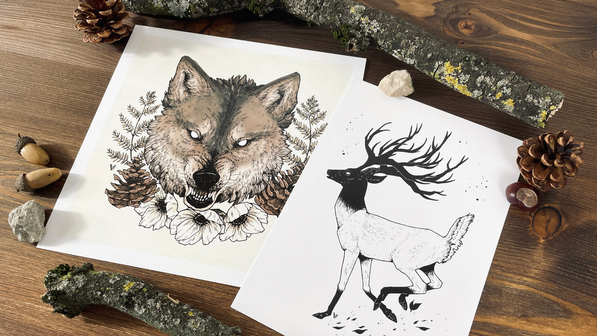 Je réalise un portrait de votre animal de compagnie ou n'importe quel animal de votre choix. Les illustrations sont réalisées à l'encre noire sur un papier 300g/m². Ajout de fleurs et/ou d'un nom possible (gratuit).